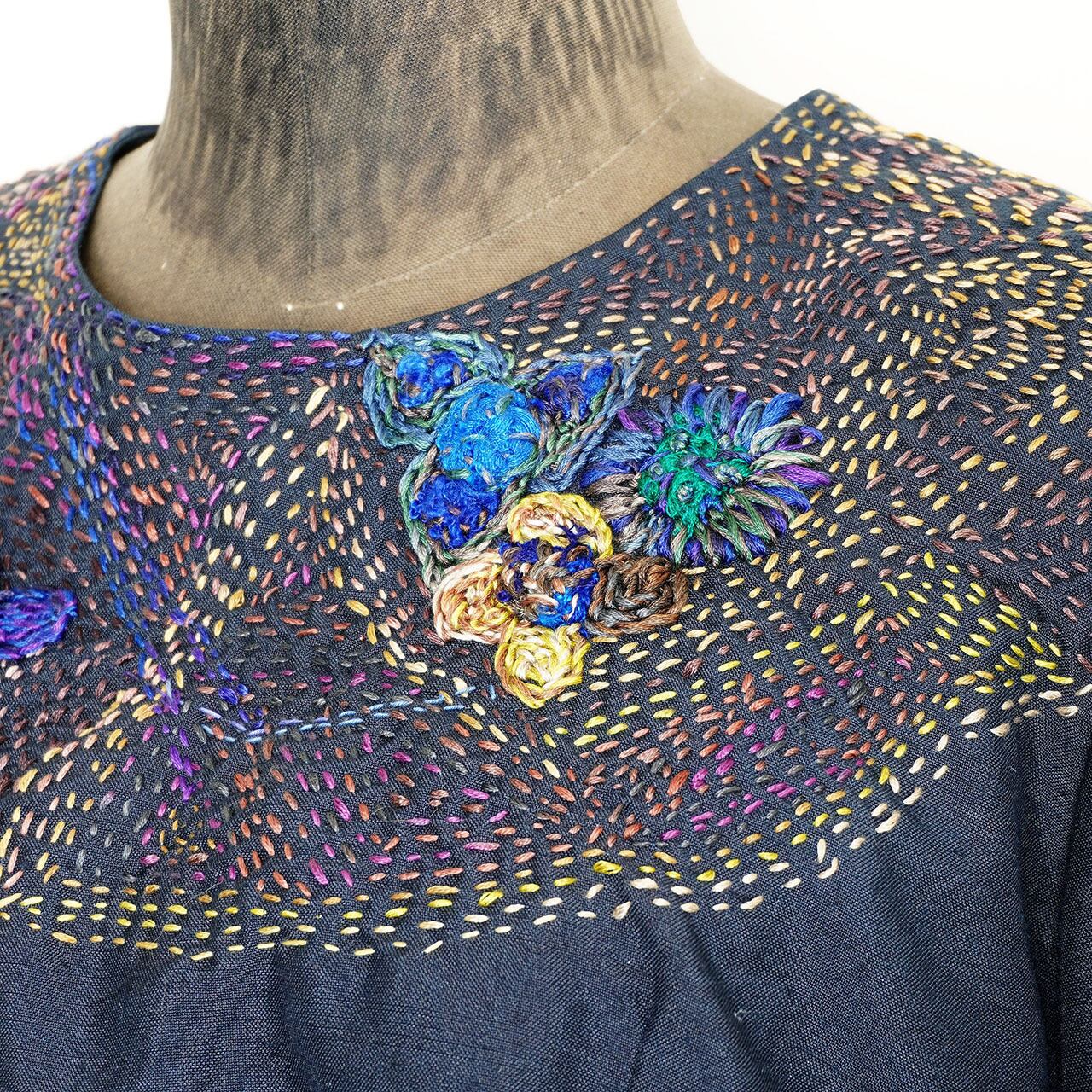 シンプルな形なのでそのままお召しになっても、ジャケットのインナーとしてもお楽しみ頂けます。カフスの紺青がさり気なく華やぎを演出してくれます。