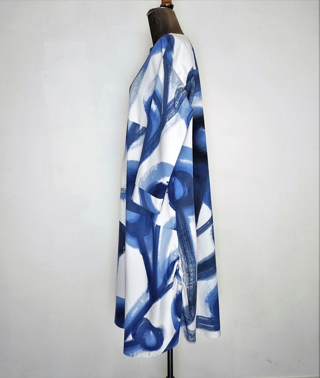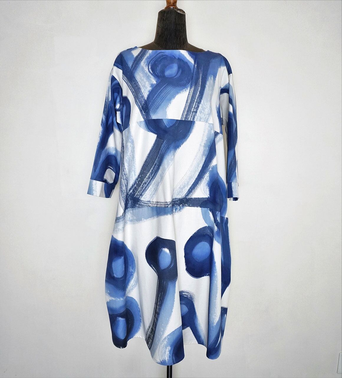 樹木の枝に留まったゲンジボタルを絹綿のワンピースの上に描きました。